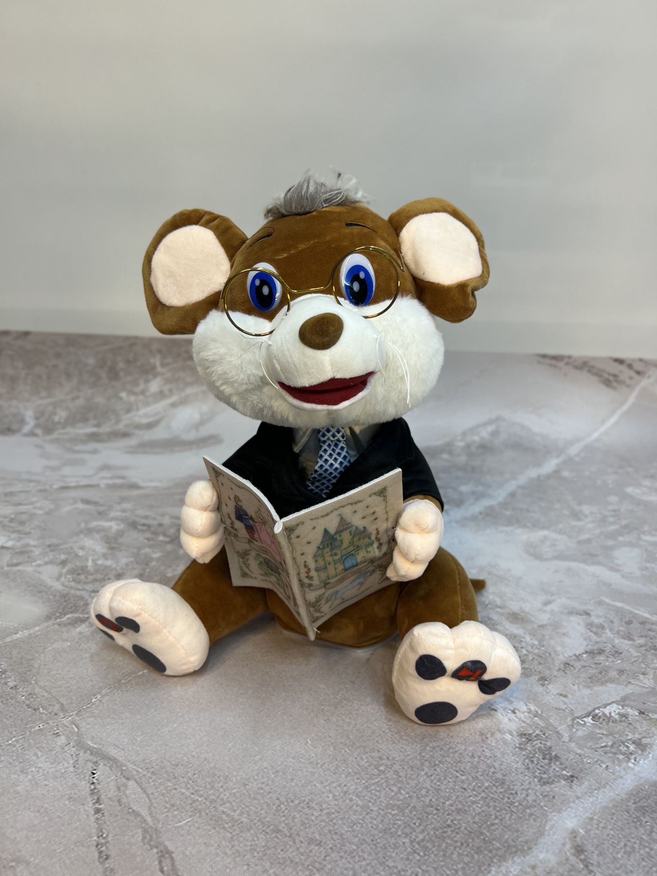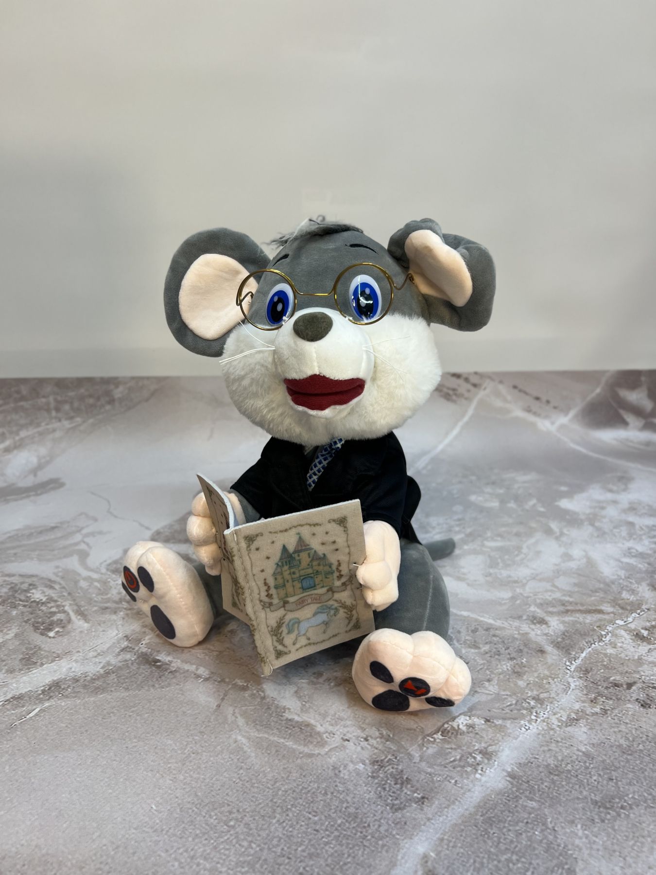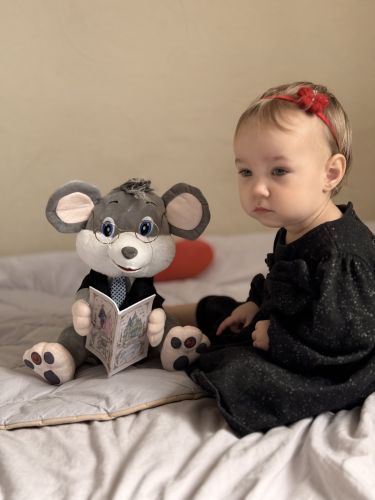 Іграшка навчить дитину слухати та запам’ятовувати нові слова, розвивати мовну функцію, фантазію та уяву. Образ інтелігентного мишеня у костюмі та в окулярах, буде гарно прикрашати дитячу кімнату.