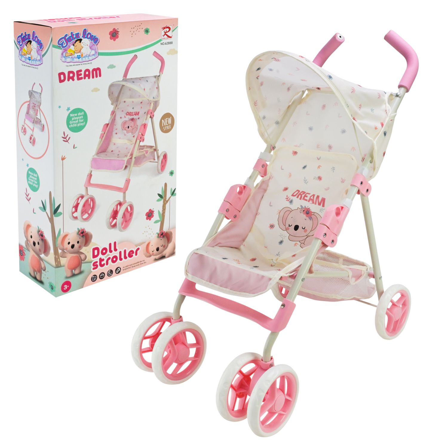 • Ніжний рожевий колір і милий дизайн із зображенням коали та квіточок додають візочку чарівності.